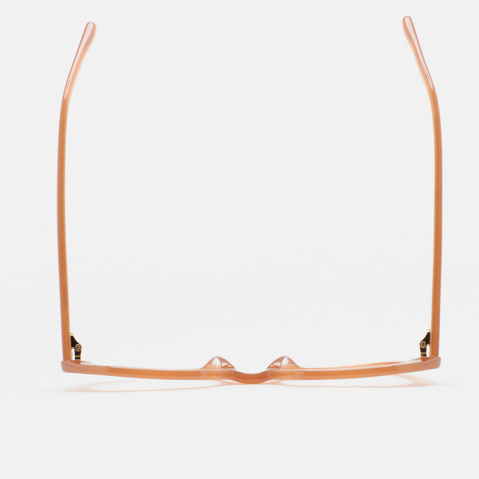 Gafa de ver de forma hexagonal. Frontal y varillas de acetato ámbar translúcido. Plaquetas de acetato incorporadas. Hecha a mano.