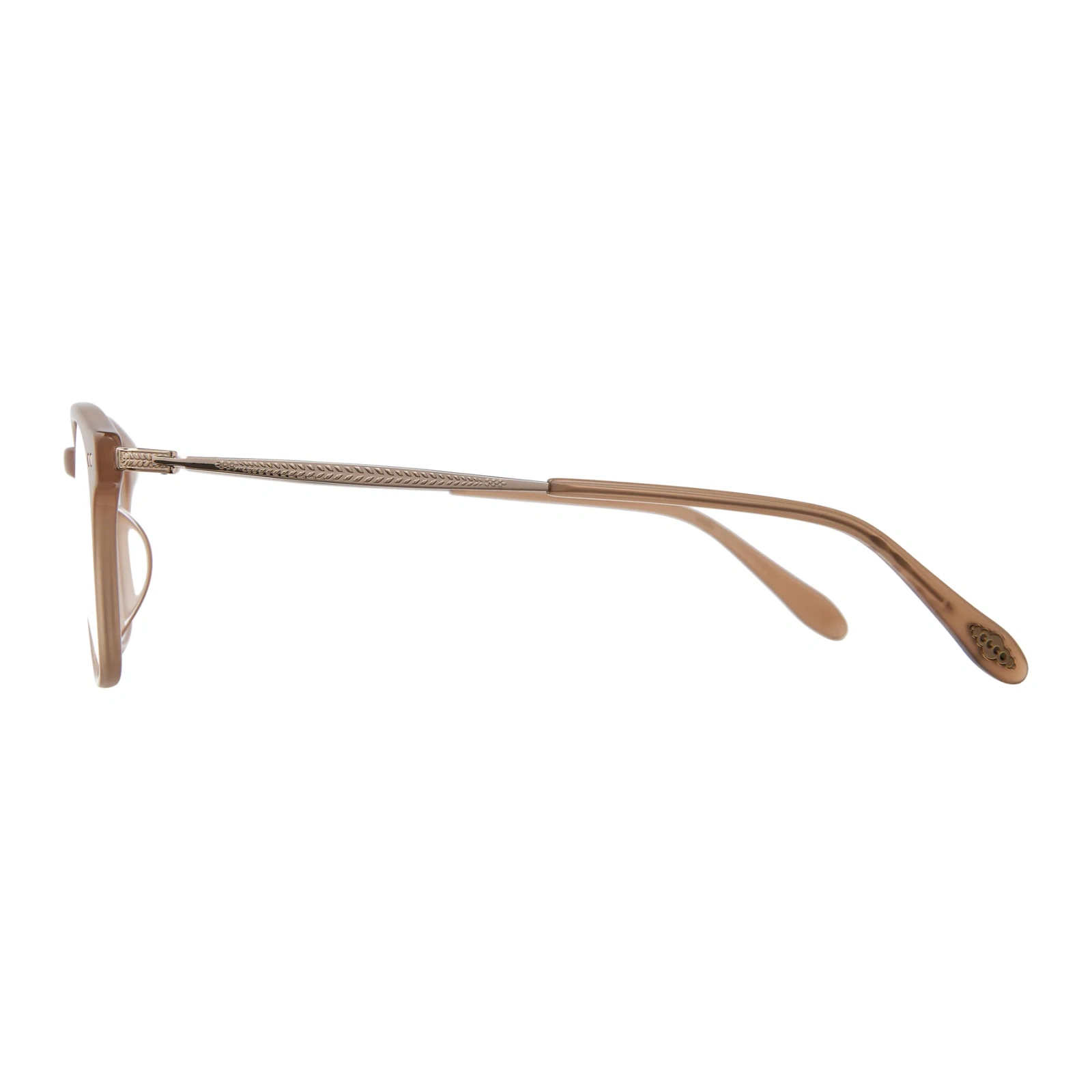Una versión mejorada del exitoso Clark, meticulosamente elaborado con exclusivos colores de acetato y lujosos detalles metálicos. La montura presenta nuestra filigrana de helecho en la punta y el alambre central, tapas de patilla personalizadas, una calcomanía de nube en las puntas de las patillas y plaquetas nasales ajustables de titanio que le dan un toque refinado y un ajuste perfecto a su diseño atemporal. Color: Fawn Gold.