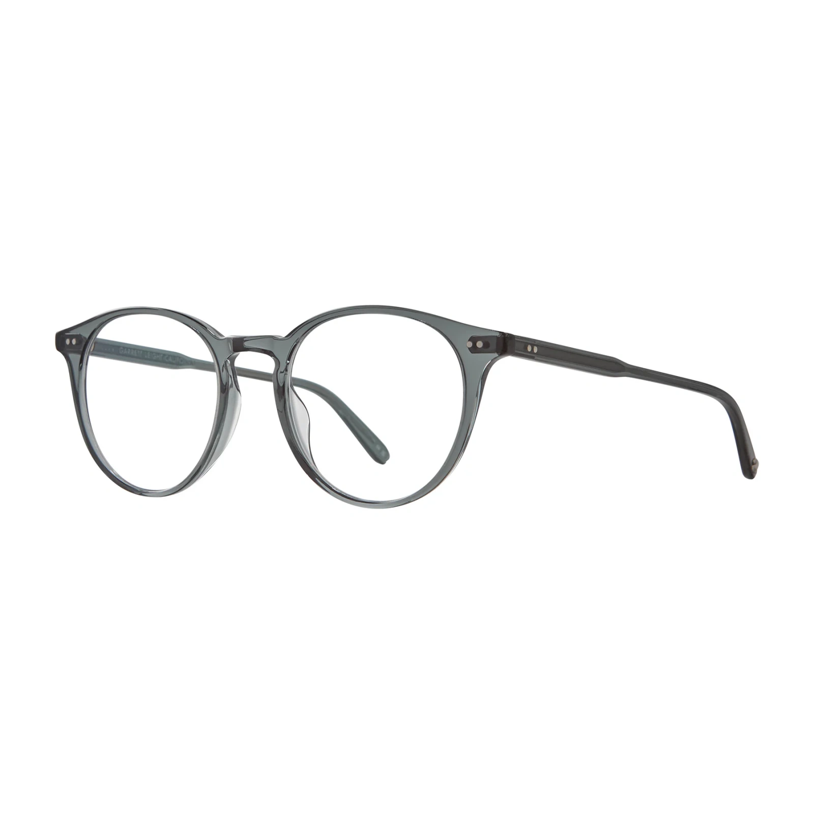 Clune de Garrett Leight. Inspirado en mediados de siglo, Clune es una versión moderna de la silueta clásica, con una forma redonda distintiva y una construcción ligera en acetato. Color: Sea Grey.