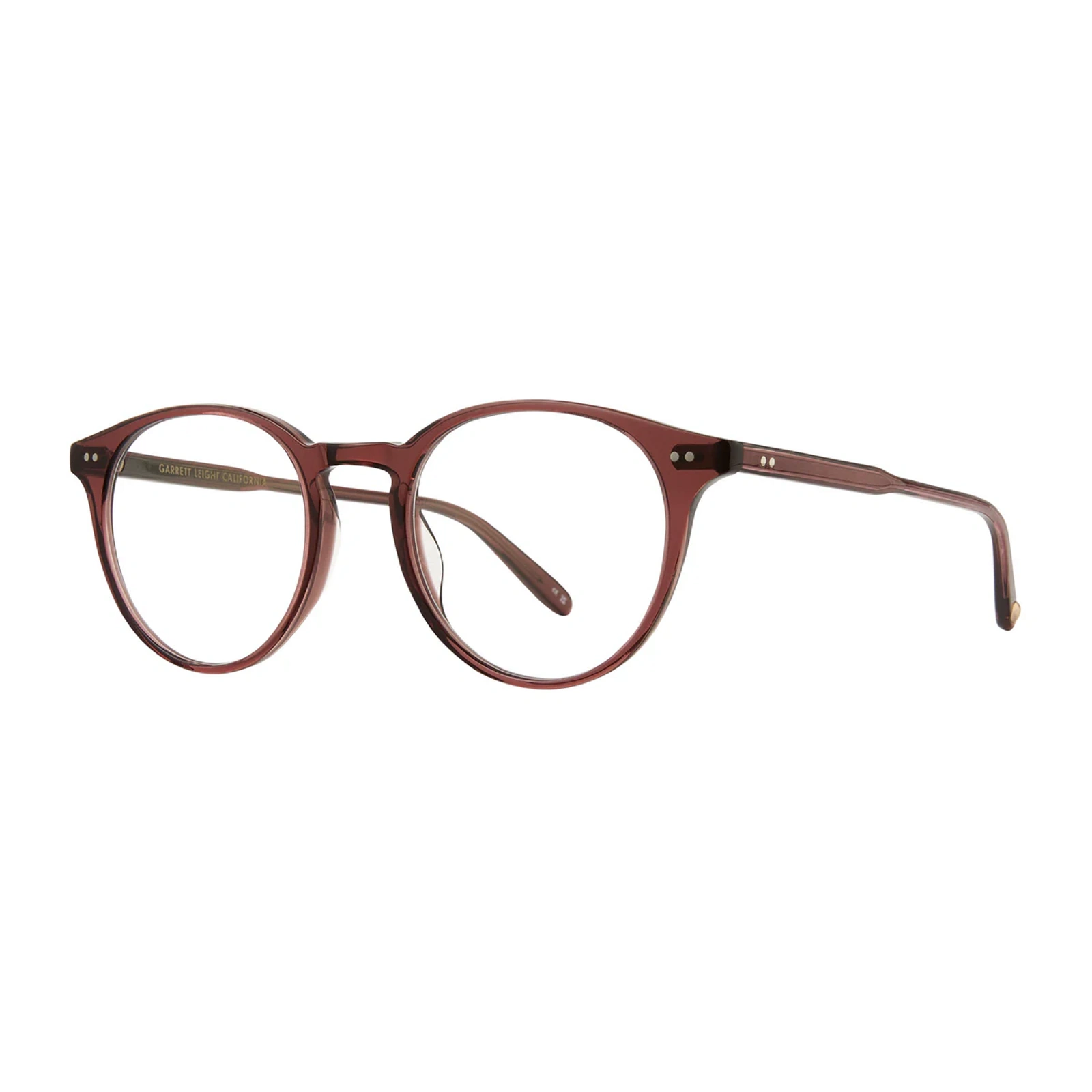 Clune de Garrett Leight. Inspirado en mediados de siglo, Clune es una versión moderna de la silueta clásica, con una forma redonda distintiva y una construcción ligera en acetato. Color: Strawberry Jam.